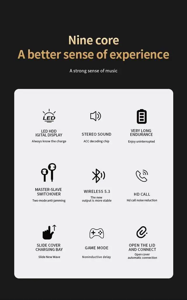 The Latest Bluetooth 5.3 and Easy Pairing: The wireless earbuds feature advanced Bluetooth 5.3 technology with fast and stable transmission without tangling, which makes the Bluetooth earbuds' connection to your electronic devices more stable and provides you with an uninterrupted call and music experience with noise cancellation