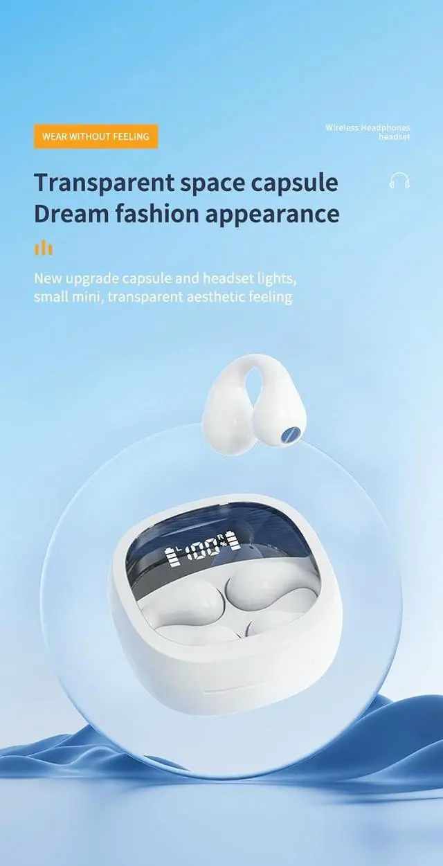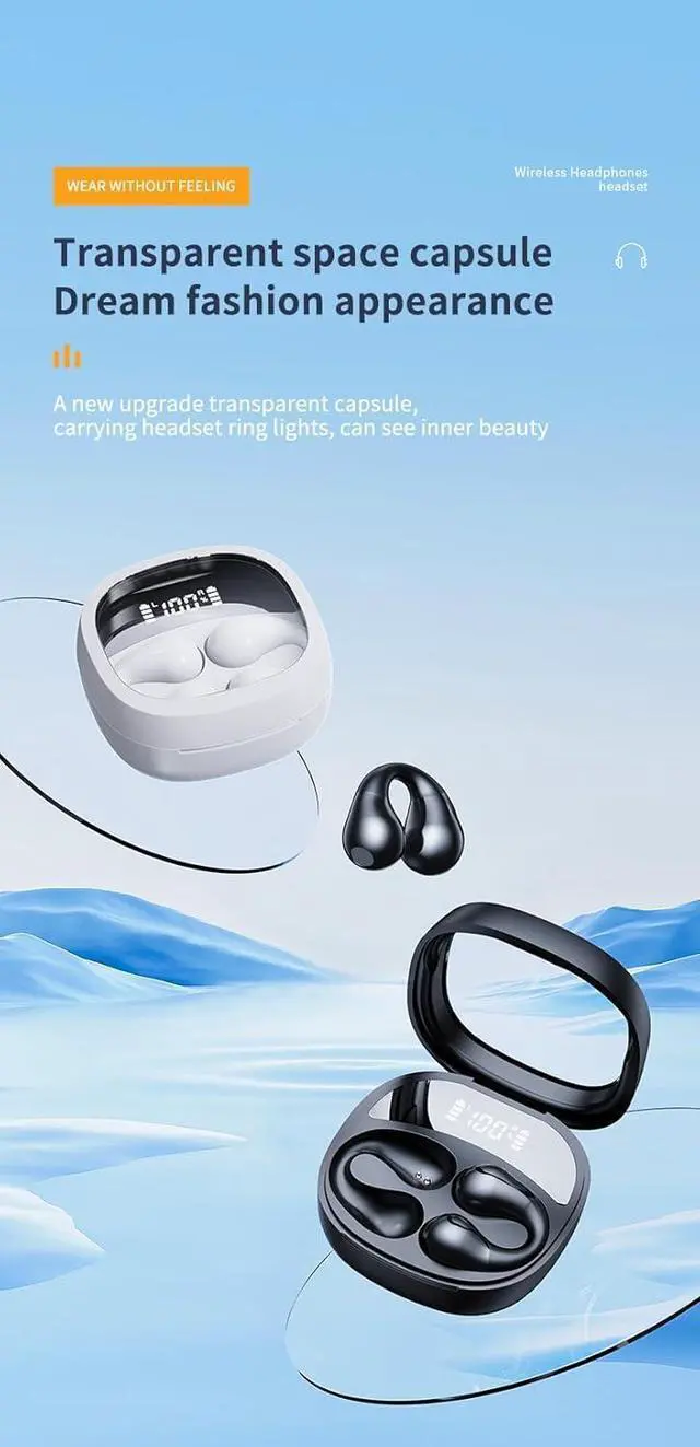 Open Ear Clip Ergonomic EarbudsReversing the ergonomic design with a completely open design, it allows you to respond politely to others while listening to the sounds of the external environment. It gently clips onto the ear like a clip, and the earbuds' earpiece rests on the cochlea, making them very comfortable to wear. The unique shape of the open Bluetooth headset eliminates the need to plug the ear canal, so no more ear pain from extended wear