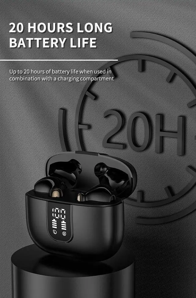 LED Power Display & Multi-functional ButtonThe charging case features an LED display that shows the remaining battery power, as well as the charging status of the bluetooth wireless earphones. An LED display keeps you informed about the battery reserves. The open ear wireless bluetooth headset features a multi-functional touch button that control of various functions. You can effortlessly play or pause music, skip tracks, answer or end phone calls, and activate voice assistant