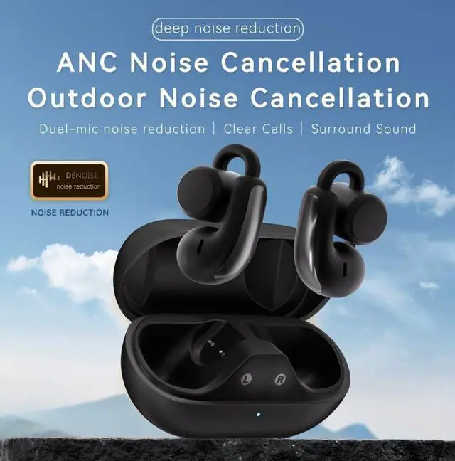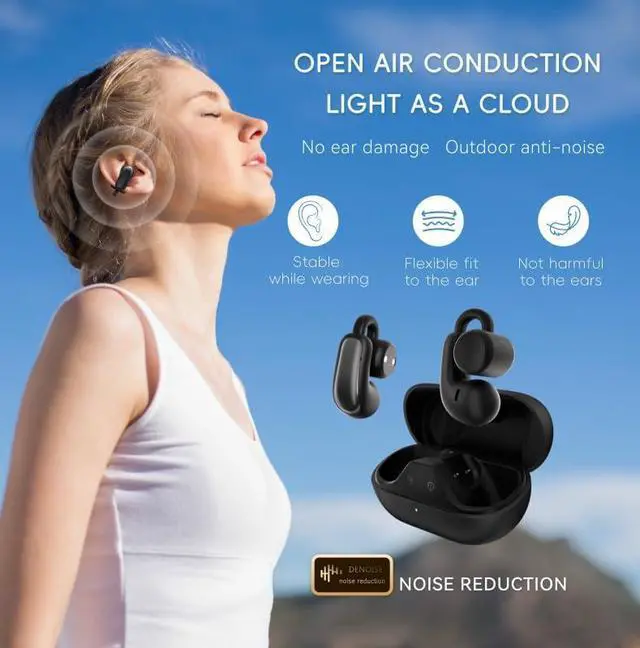 [HD Noise Cancelling Calls] Dual microphone design with ANC noise cancellation for clear calls as if you were talking face-to-face. Open ear Headphones bluetooth noise cancelling binaural calls with auto noise filtering Stereo surround sound for clear calls with noise cancelling function. Resistant to water and sweat, no worry about sweat damage.