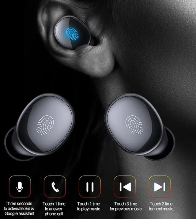 Touch Control & Wide Compatibility: Built-in sensitive touch control key on the Bluetooth earbuds wireless lets you easily manage many functions. Change songs or adjust volume, or make phone call, all operations at your fingertips, hassle-free your hand without taking out devices. Compared with physical button, wireless earphone largely reduces the pressure to your ears. Compatible with most Bluetooth-enabled devices including iOS or Android smartphones, TV, tablet, Laptop, or smart watch etc.