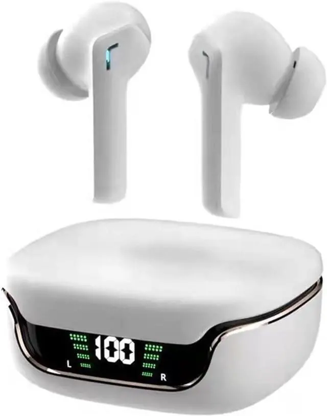 Bluetooth 5.3 Wireless in-Ear-Headphones Earbuds LED Power Display Earphones with Charging Case IPX5 Waterproof in-Ear Earbuds with Mic for TV Smart Phone Laptop Computer Sports White