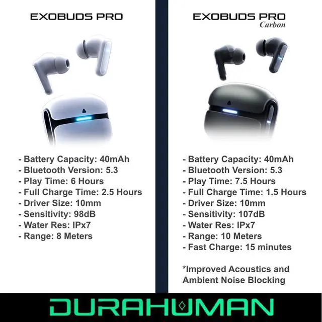 Convenient and comfortable - Listen in comfort with the EXOBUDS PRO earbuds. Their ergonomic design fits well securely in your ears and the light weight ensures you can wear them all day. Plus, these earbuds are water resistant up to IPX-5 for added peace of mind
