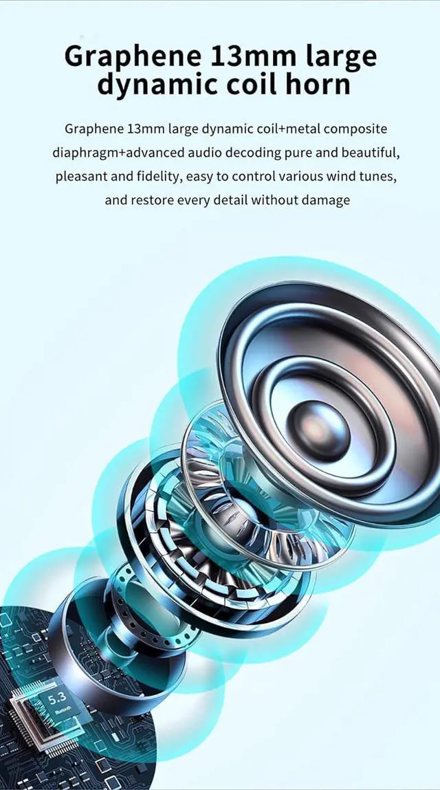 Graphene 13mm large dynamic speakerGraphene 13mm large dynamic circle + metal composite diaphragm + advanced audio decoding pure and dynamic, pleasing to the ear fidelity, easy to handle a variety of wind songs, non-destructive restoration of each detail