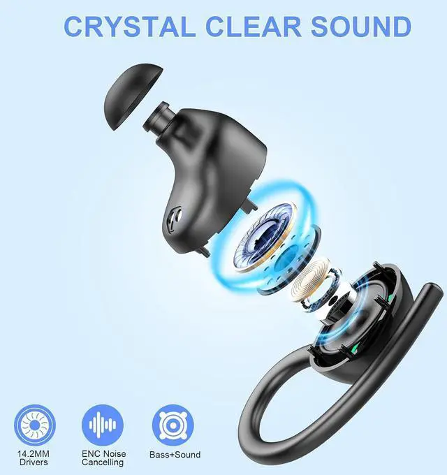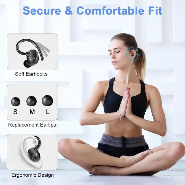 Fit for Movement and IP7 Waterproof: Designed with flexible and soft ear hooks, earbud wireless bluetooth running fit perfectly in your ears and stay focused on your exercise routine without worrying about falling out. To provide you with customized comfort, 3 multiple sizes of ear tips(S/M/L) are available. At the same time, wireless headphones has an IP7 waterproof rating, which can resist sweat, rain and minor water splashes during exercising, sporting, gym, cycling etc.
