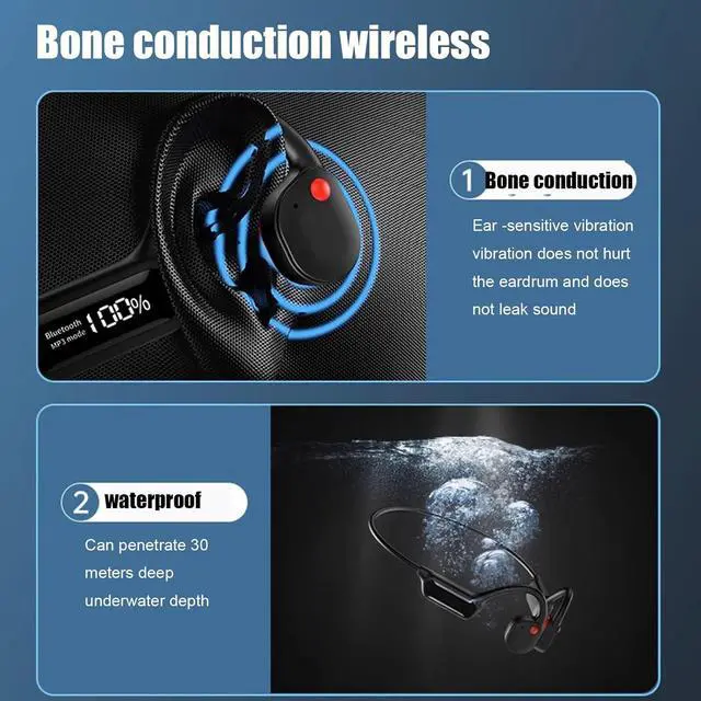 Bone Conduction Swimming Headphones: The headphones are specifically designed for swimmers, utilizing bone conduction technology to deliver audio through the cheekbones. This allows swimmers to enjoy their favorite music while still being able to hear their surroundings and stay safe in the water.