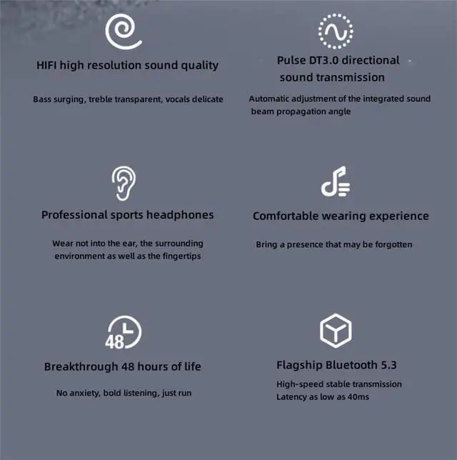 Bluetooth Technology: The wireless bone conduction headphones utilizes advanced Bluetooth for strong signal transmission and lower power consumption. It supports super stable connection and multi-pairing. Call, ensure freedom of movement, stable and durable.
