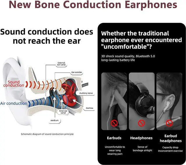 Healthy & Safe: The sound transmission does not go through the tympanic membrane, reducing tympanic membrane damage. The open ear headphone allows for you to hear what is going on around you, safer for biking, running, and driving than traditional sound-canceling devices.