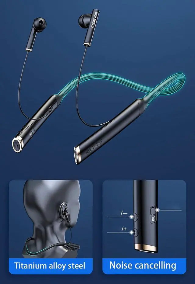 Soft and Lightweightneckband Bluetooth headphones have a lightweight silicone neckband with a titanium alloy steel core to ensure a snug fit on your shoulders and superior shape retention.
