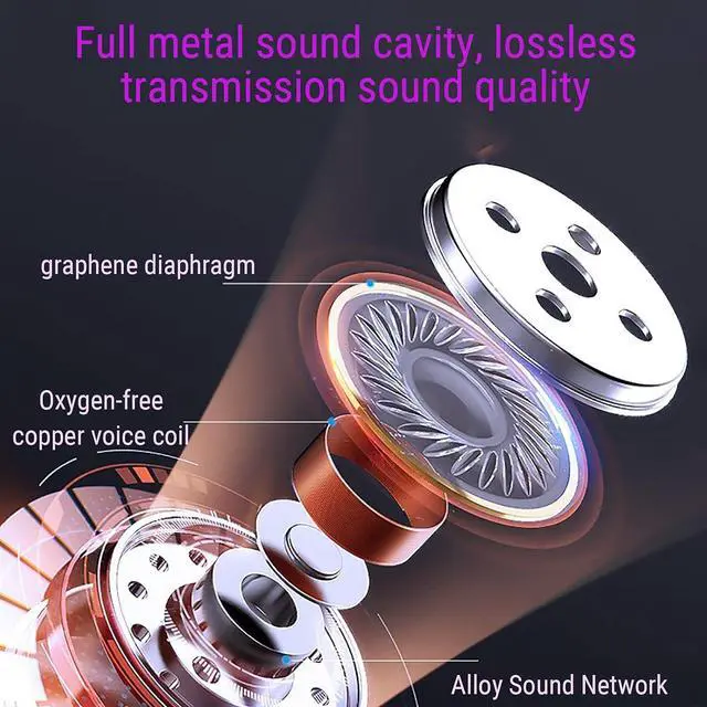 STEREO SOUND QUALITY, RICH EXPERIENCEFull metal sound cavity, 0.56inch graphene diaphragm, the sound effect is clearer; dual sound holes, HIFI sound quality, give the sense of space to the hearing