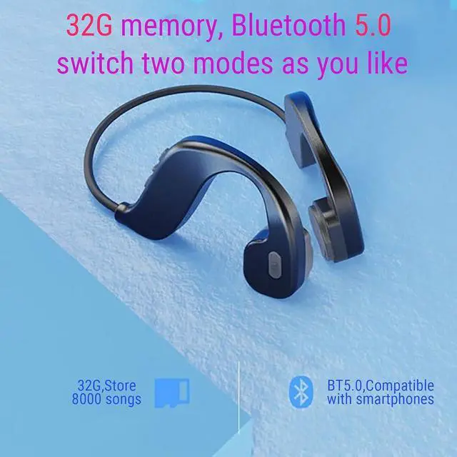 BONE CONDUCTION HEADPHONES WITH MIC: High quality microphone and HD call, 32G memory for MP3 player, 8000 music, enjoy it at any time. Brand new Bluetooth 5.0, professional HIFI audio, lossless sound quality