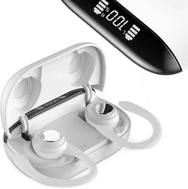 LED display case - A portable charging case gives you the opportunity to recharge your earbuds when on-the-go. Four bright white LED lights will illuminate to indicate charging percentage of your earbuds. Play time up to 4 hrs. And up to 10 hrs with charging case.