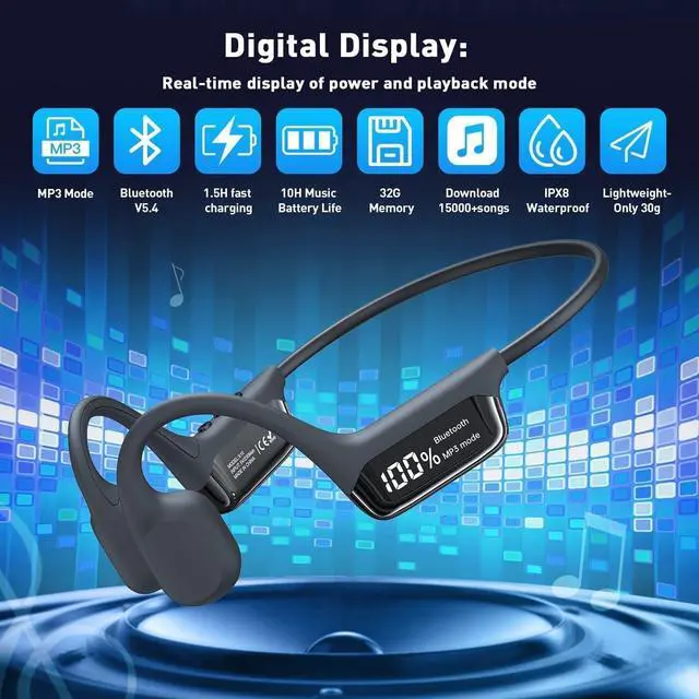 EQUIPPED WITH DIGITAL DISPLAY - Equipped with an LED digital display screen, after turning on, it will display the remaining power and listening mode (Bluetooth mode or MP3 mode), which is more clear at a glance. It comes with a 32GB memory card that can store 10,000+ songs, allowing you to enjoy music even without a mobile phone. The latest Bluetooth 5.4 chip can improve performance, stable and fast connection and enhanced sound quality.