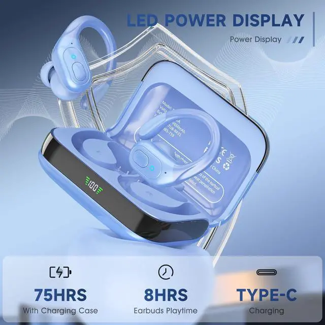 75 Hours Playtime and LED Digital Display: With fast charging Type-C interface, the in ear wireless headphones be fully charged for only need 1.5 hours. Playtime lasts for over 8 hours from a single charge and a total of 75 hours with the charging case. Features with a smart LED digital display, you can easily know the battery consumption on both wireless bluetooth headphones and the charging case so you can master the time to charge it.