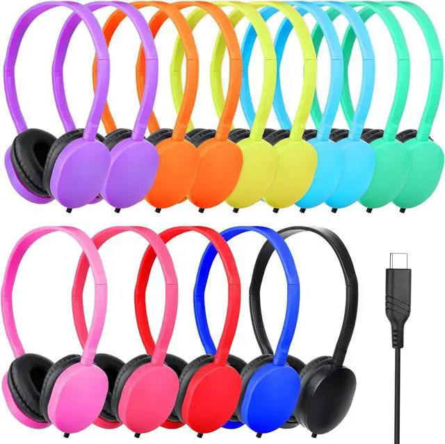 20 pack wired on-ear USB-C headphones, bulk set in a 10 colors mixed,each with soft ear cushions, adjustable headband, and rotatable earcups for comfort and flexibility