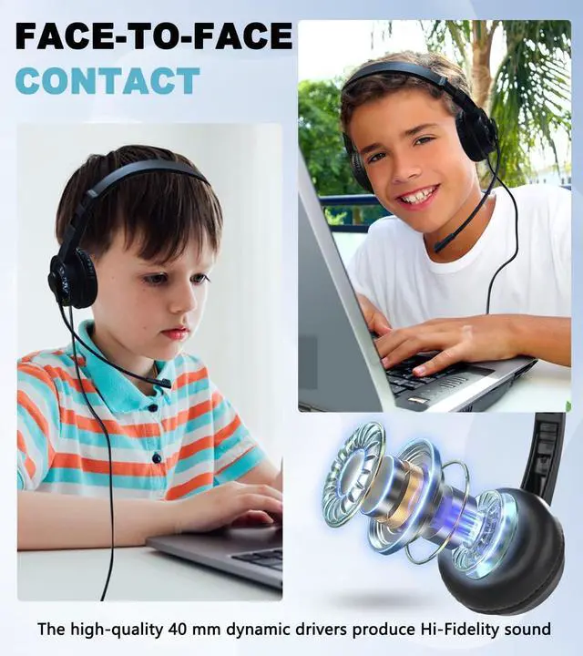 CLASSROOM HEADPHONES WITH MICROPHONE: Ladont provides students with a 20-pack of microphone headphones for classroom use. The kids headphones is of an ergonomic design, preventing students from soreness or fatigue over the long wearing time.