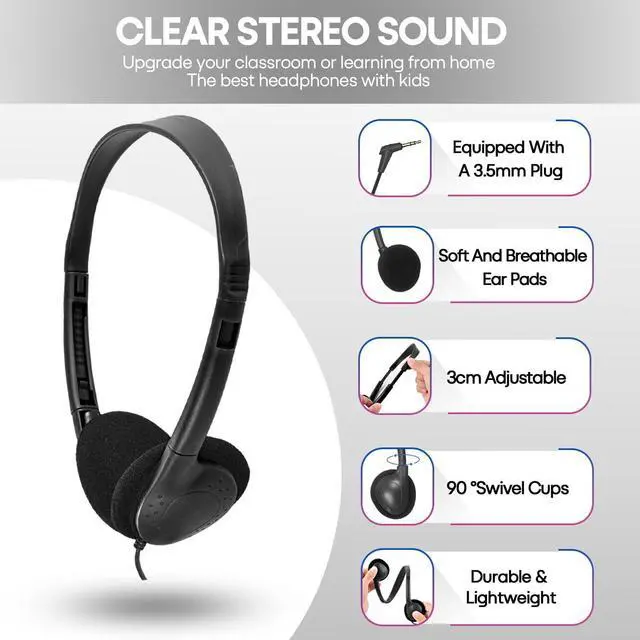 BULK VALUE: 50 sets of wired headphones, perfect for use in classrooms and schools.