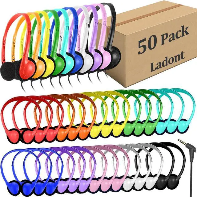 Highly durable 10 color kids classroom headphones (set of 50), Cord Length 1.2 m/ 47.25 inches.