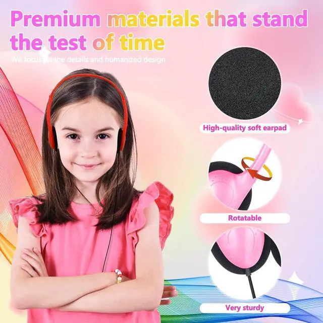 • Wired Boys Girls HeadphonesOur head phones feature an ergonomic design and adjustable headband for a perfect fit on the head. Childrens headphones are flexible enough to release pressure on the head and come with super soft and breathable ear cushions to ensure your child is comfortable for long term wear