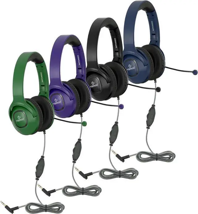 The Egghead® Premium Foldable Headset is designed for both comfort and durability, making it perfect for long listening or learning sessions. The soft leatherette ear cushions and padded, adjustable headband provide a comfortable fit for users of all ages, ensuring hours of use without discomfort. Its swivel and pivoting earcups allow for easy wearing and convenient storage, making it ideal for travel or classroom environments. The five-foot Tri-Shield cord is built to withstand kinking and damage from chewing, while its tangle-free design ensures hassle-free use. Featuring a 3.5mm, 120° slim barrel plug, the headset offers a secure, break-resistant connection, even with thick device cases. The uni-directional microphone adjusts easily on a flexible steel-reinforced gooseneck, and it provides a full 360° pivot for clear communication. The headset also includes a resealable storage bag with labeling space, reducing the risk of lice spread in shared environments. With an industry-leading three-year warranty, the Egghead® Premium Foldable Headset ensures reliable, long-lasting performance for any user.
