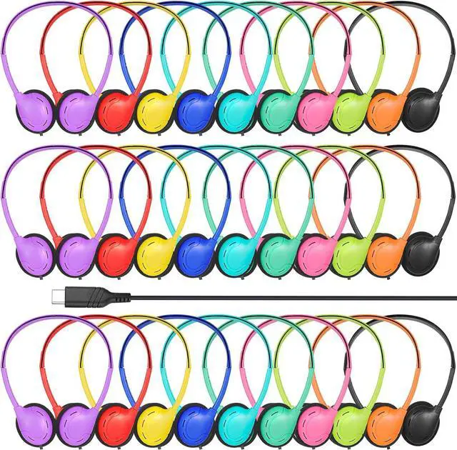 USB C Headphones Bulk 30 Pack for Classroom School Kids,USB Type C Headphones Class Set Compatible with Pad SmartphonesFor Boys Girls Students Travel Mixed Colors