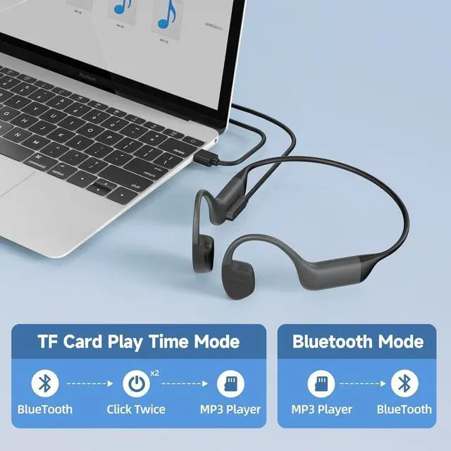 BT 5.4 Support Multi devices Stable connection Bone conduction headphones with the latest version 5.4 of Bluetooth chip,transmission range up to 13 meters, it quickly pair with all BT devices such as smartphones, tablets, smart watches and more, allows you listen to music hands-free at any time, supports connecting multiple devices