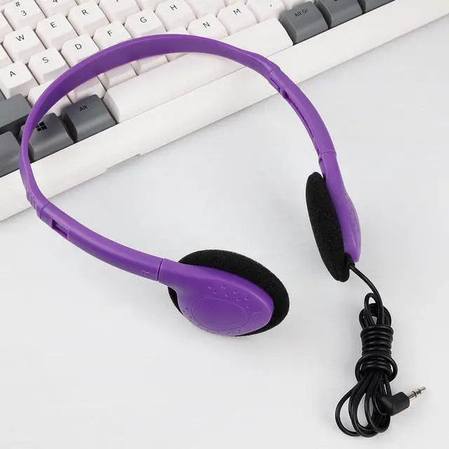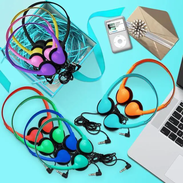 Bulk headphones for classroom with a 3.5mm jack that kids can plug into Chromebook computer laptop