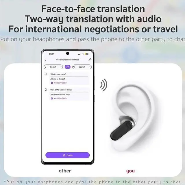 AI-Powered Translation & CommunicationThe NE20 translation earbuds instantly translate face-to-face conversations in 140 languages, making these NE20 Bluetooth earbuds perfect for travel, business, or multicultural communication. Experience seamless AI-powered language translation on the go