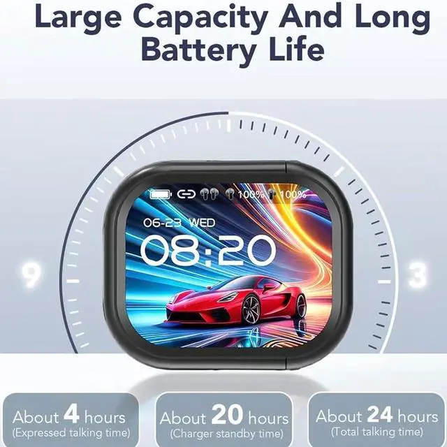 Smart Touchscreen & Versatile FeaturesThe NE20 smart wireless earphones with a touch screen give you full control over music, calls, and translations. Set alarms, toggle noise modes, and play stress-relief games with the intuitive LCD touchscreen, enhancing your on-the-go experience