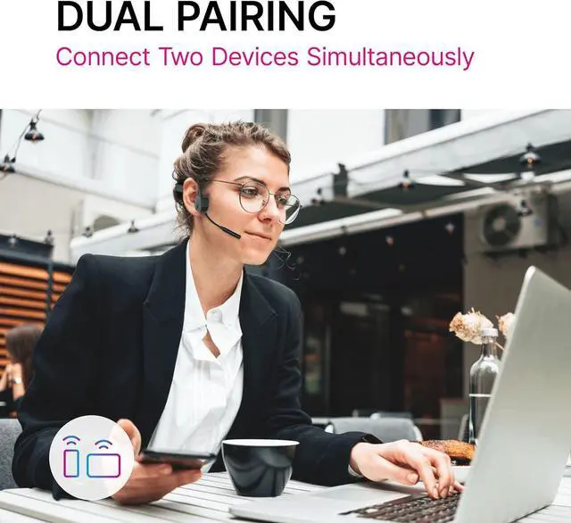 DUAL PAIRING: Connect two devices at the same time. Hands-free headset increases your productivity