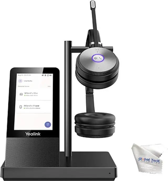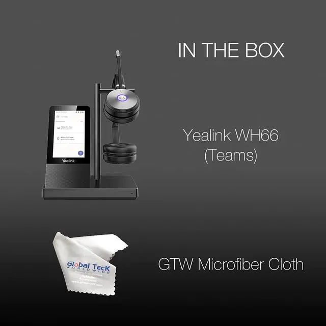 YEALINK BUNDLE OF 3 ITEMS: Yealink WH66 Duo (Teams Certified) wireless headphones, Yealink Base, and Microfiber Cloth