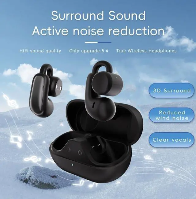 Open Design Headphones: Ear clip headphones wireless bluetooth. Adopt an advanced open design, allowing you to hear the surrounding environmental sounds while enjoying music. Its ear clip shape can be easily fixed on your ears without causing you any discomfort or pressure