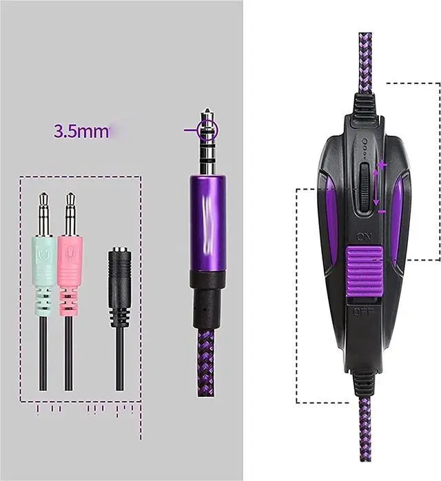 Multifunctional & Convenient Controller: Gaming headphones with in-line controller: volume adjuster, mic volume adjuster, mic ON/OFF.