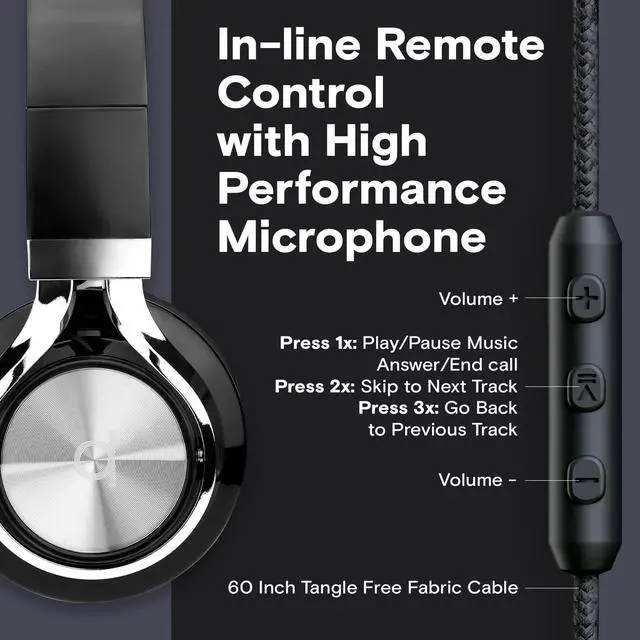 Enhance your daily activity by enjoying your media with our quality wired headphones with mic which provide a perfect custom fit for all users, with a padded headband for additional comfort. With a Tangle-Proof Cord and FOLDABLE for convenient storage, there is no need to worry about space or fighting with annoying knots. Built to last through rough commutes, sporting activity, and more, sturdy, durable construction ensures youll have your favorite pair of adjustable ear phones for a long time.