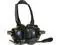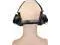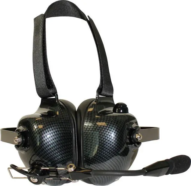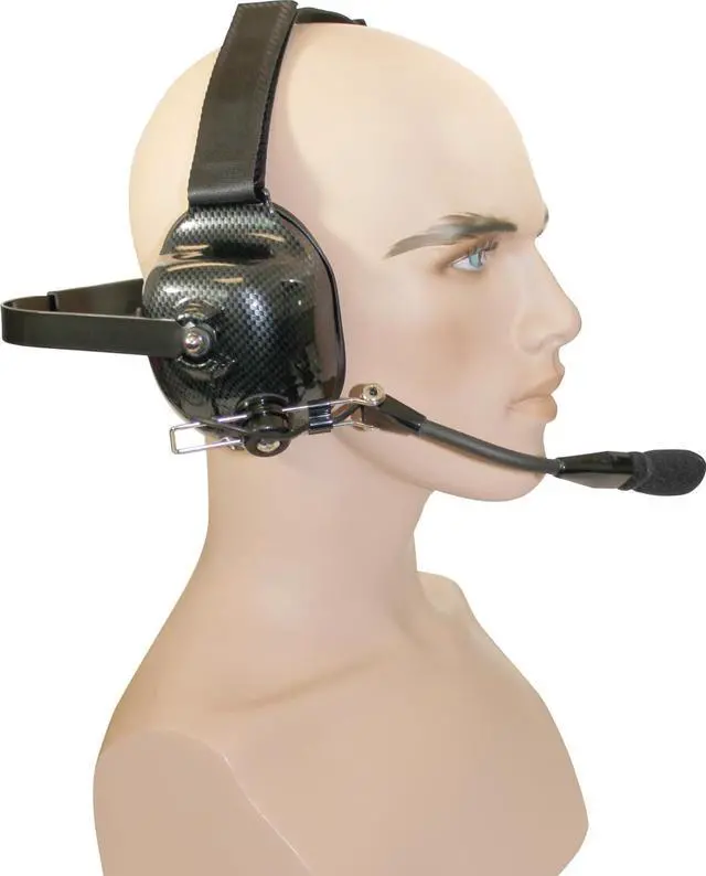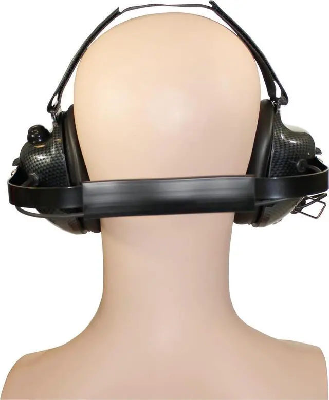 Dual muff style headset with adjustable behind-the-head stainless steel band and over-the-head adjustable Velcro strap