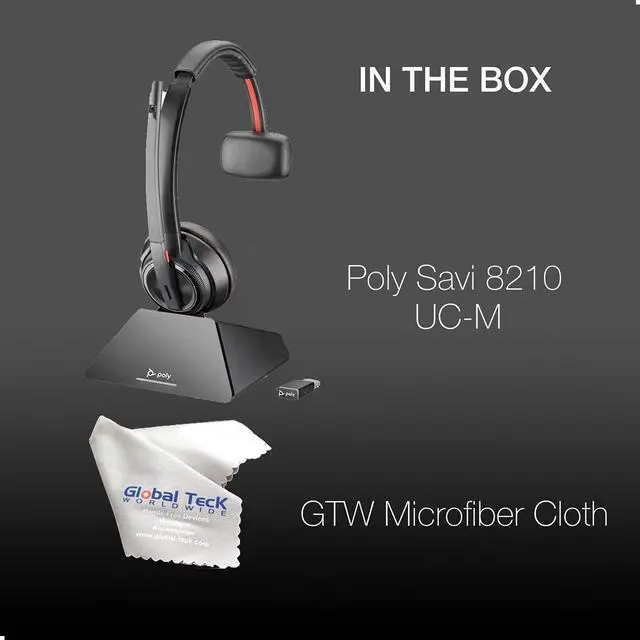 POLY BUNDLE OF 2 ITEMS: Poly Savi 8210 UC-M (Teams) Bluetooth Headset with Base and Microfiber Cloth