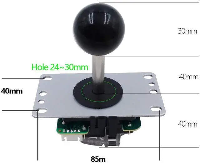 Button Hole 28mm, Joystick Hole 24~30mm, USB Cable 180cm, Button & Joystick Cable 20cm.