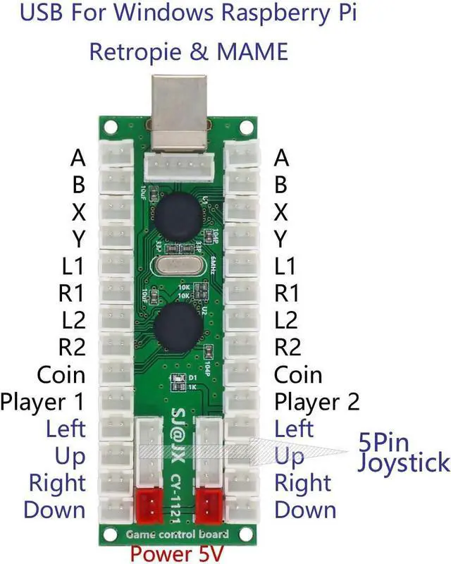 Zero Delay SJ@JX USB Encoder for PC MAME Raspberry Pi & Android. Suit for 5V LED.