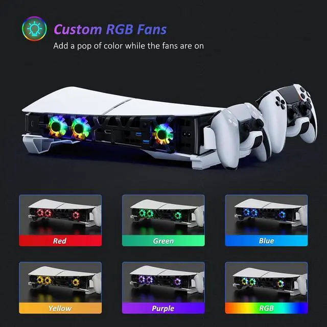 NexiGo PS5 Slim Horizontal Stand with Charging Station for Dual_Sense&Dual_Sense Edge Controllers,Silent Cooling Fan w/Intelligent Temperature Control, LED Indicators, White