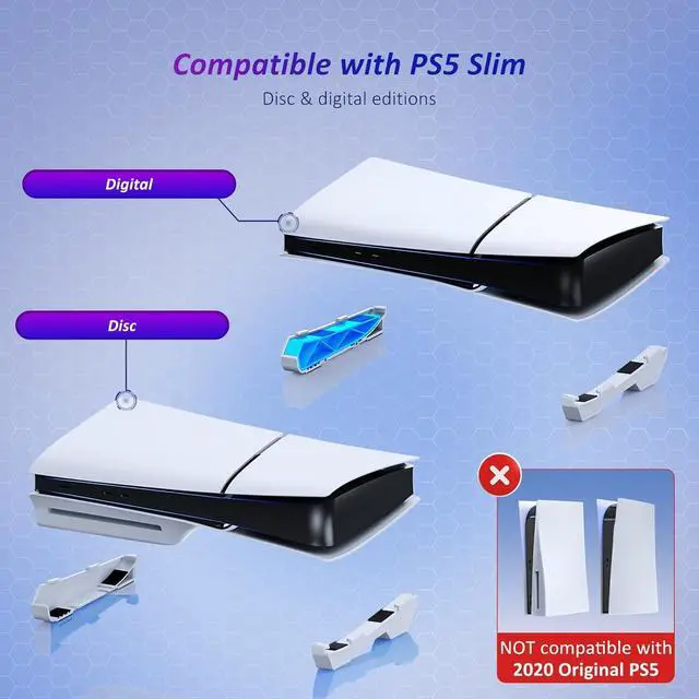 Space-Saving Horizontal StandThe included horizontal stand boosts your PS5 Slim console up an extra inch, helping to improve airflow and overall stability. Its horizontal orientation makes it easier to store the PS5 Slim in your living space.