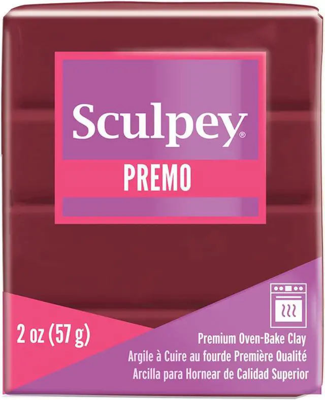 Sculpey-Premo Polymer Clay. Alizarin Crimson Hue. This remarkable clay quickly reaches a workable state (with a minimum of conditioning) and remains soft and pliable while offering extra resistance without crumbling. The artists' color palette is great for color mixing and blending. Premo Sculpey is not brittle after baking, is great for millefiore with a firm smooth texture, is non-toxic, and comes with a vast color palette (each sold separately). This package contains 2oz of Premo Sculpey Polymer Clay. Made in the USA.