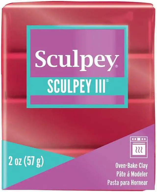 America's original oven-bake clay! Deep Red Pearl. Sculpey is soft and pliable, works, and feels like ceramic clay but will not dry out when exposed to air. Perfect for everything from molded items to free-form jewelry pieces, figurines, ornaments, and scrapbooking embellishments. Shape, bake, and once cool can be sanded, drilled, carved, glued, inked, painted with water-based acrylics or Sculpey Brand Glaze. This package contains 2oz of polymer clay. Conforms to ASTM D 4236. Comes in a variety of colors.