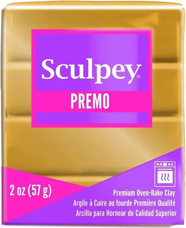 SCULPEY- Premo Sculpey Polymer Clay. 18K Gold Color. This remarkable clay quickly reaches a workable state (with a minimum of conditioning) and remains soft and pliable while offering extra resistance without crumbling. The artists' color palette is great for color mixing and blending. Premo Sculpey is not brittle after baking, great for millefiore with a firm smooth texture, is non-toxic, and comes with a vast color palette (each sold separately). Each package contains 2 ounces. Made in the USA.