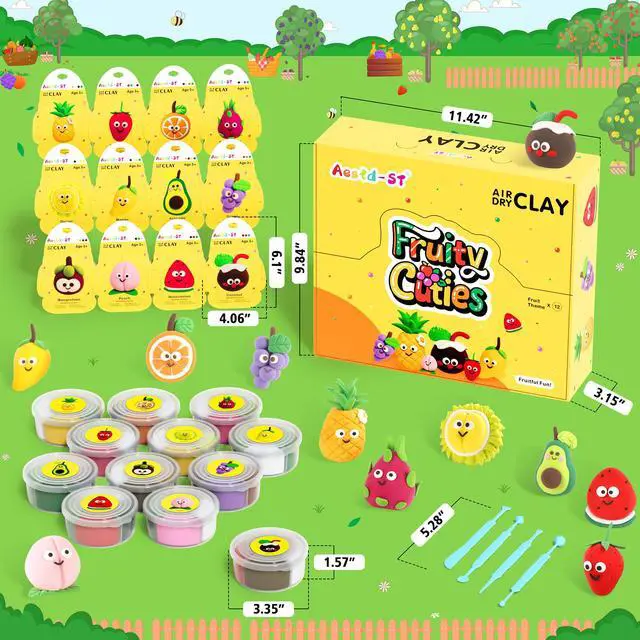 Creative Fun & Kids Gift: This air dry clay kit features vibrant, kid-friendly packaging with playful fruit designsSuitable for boys, girls, and teens. A thoughtful present blending artistic crafting, education, and family fun at birthdays, Christmas, parties, and seasonal celebrations!