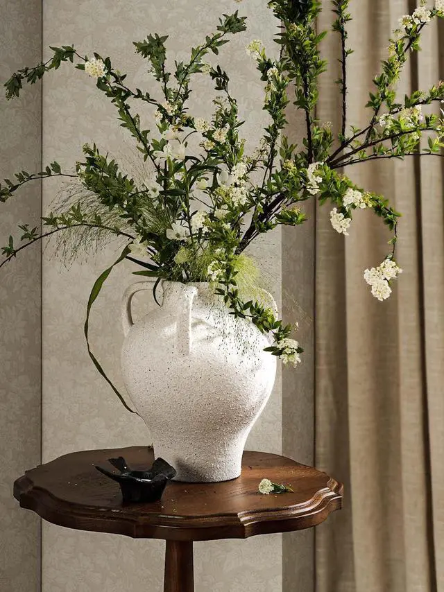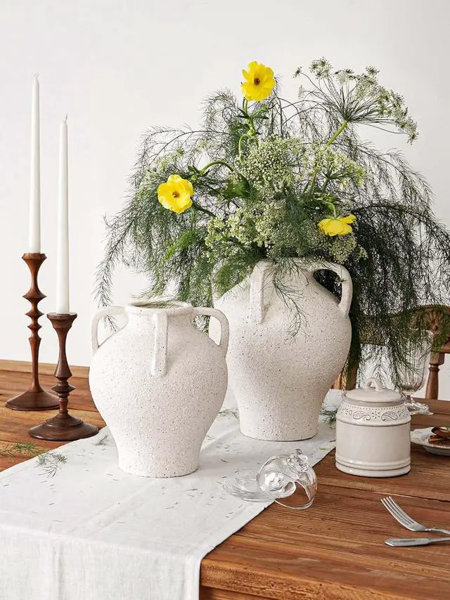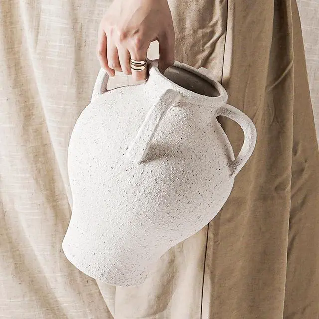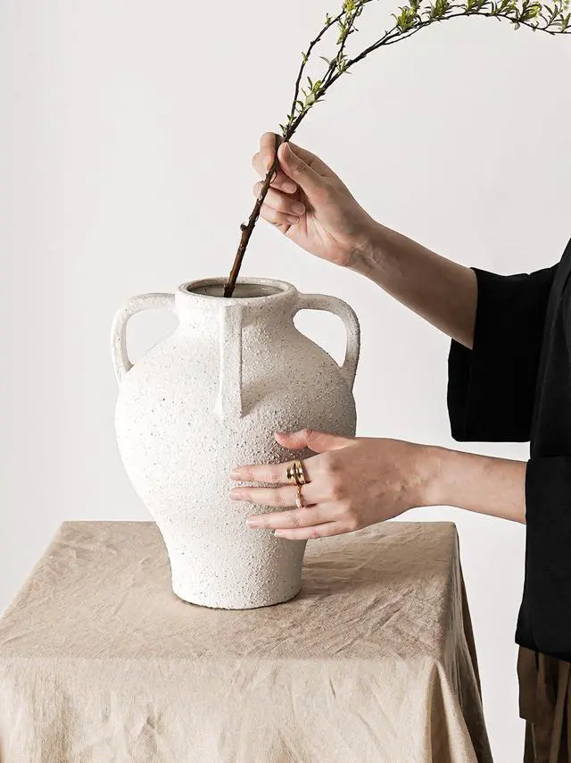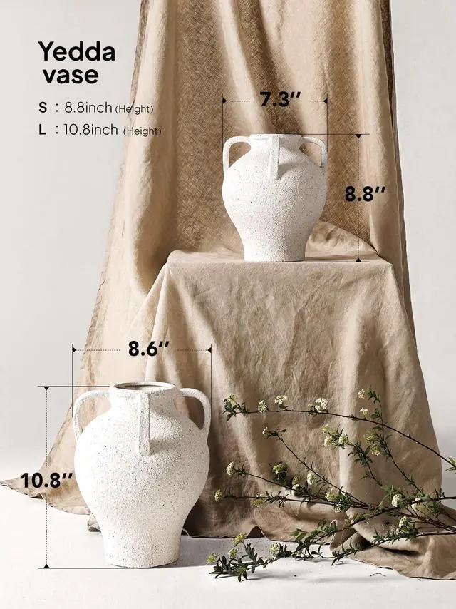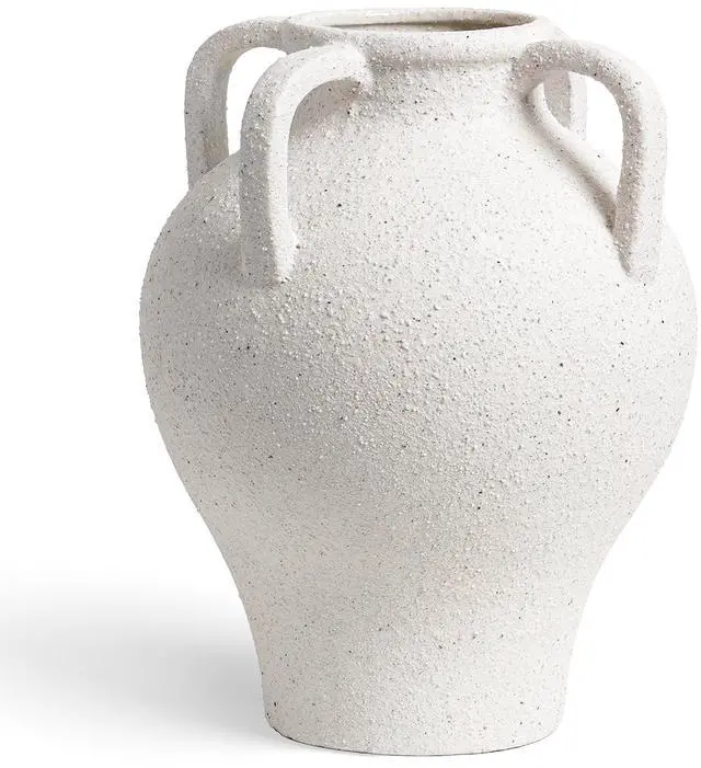 Large White Ceramic Vase - 10.8 Inch Rustic Farmhouse Vase with Handles for Home Decor, Vintage Tall Vases for Living Room, Table, Bathroom, Holiday & Weddings (Gritstone White)