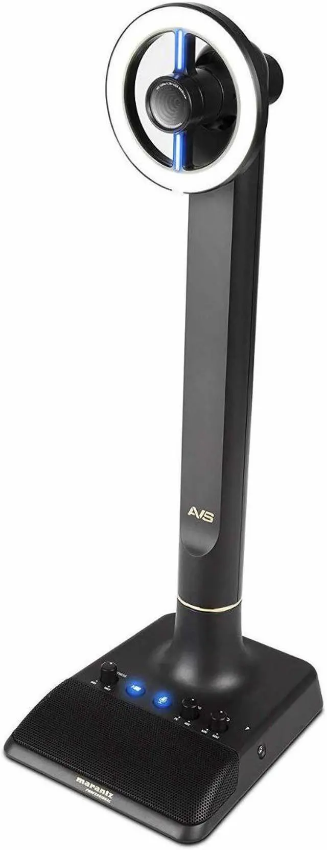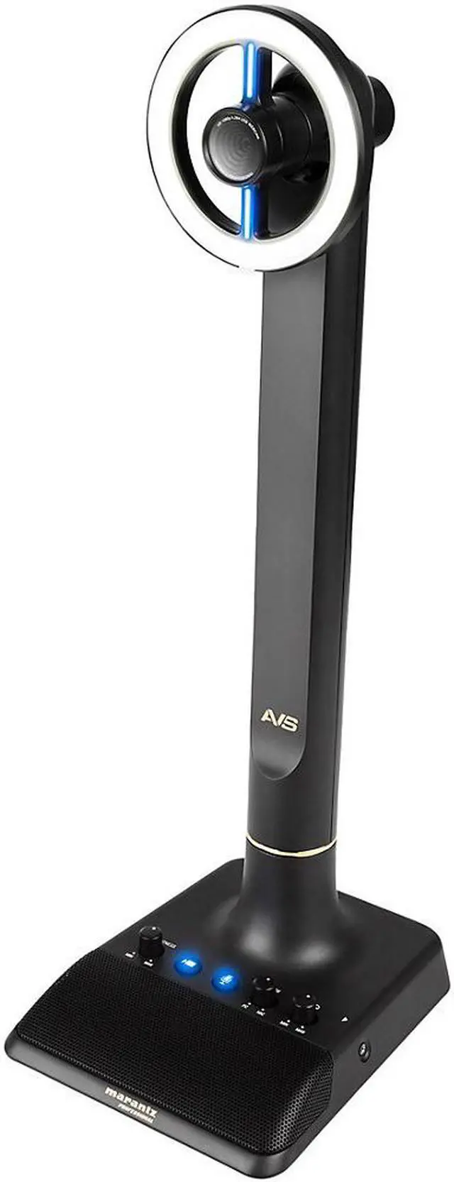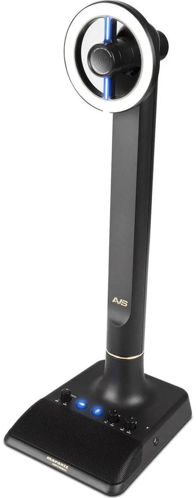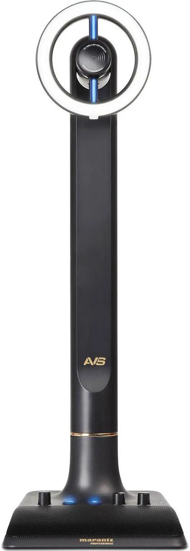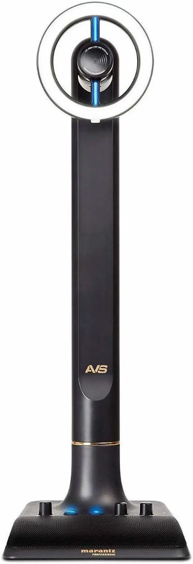 The AVS features a full HD webcam compatible with H. 264 video compression, a high-quality 48kHz/16-bit USB condenser boundary microphone conveniently integrated into the base of the unit, and an LED light ring, daylight-balanced, with both cool and warm filter accessories for the look of a studio production. The Marantz AVS is a unique, all-in-one broadcast tool that is designed for live-streaming, video calling and gaming applications. It is compact and simple, perfect on a desktop, and the lightweight design makes it portable enough to take on location.