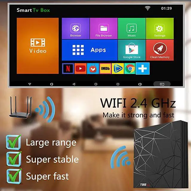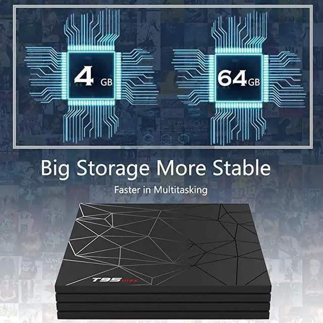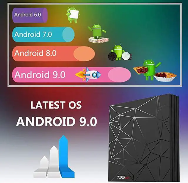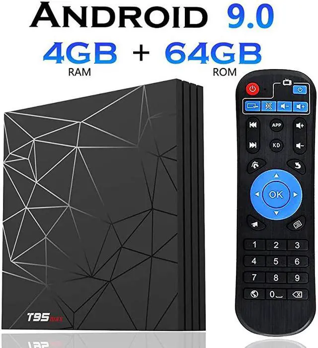*****NEWEST ANDROID 9.0 OS T95 max Android tv box adopts updated Android 9.0 OS which provides you a smooth and fast running speed. Compatibility with the the vast majority of software, games and applications, to meet the needs of different users. *****4GB RAM and 64GB ROM T95 Max Android media box provides plentiful room 4GB DDR3 RAM 64GB ROM CPU bring quick start for your apps and games. You can download plenty of apps as you want via this android tv box. *****SUPPORTS 6K and 3D 2019 latest Smart TV box supports decoding and playing almost all popular audio and video formats, you can enjoy 6K ultimate HD video, which is clearer than 4K.