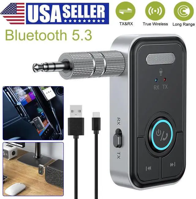 2-in-1 Wireless Bluetooth 5.3 Transmitter Receiver 3.5mm Jack Audio Adapter Aux