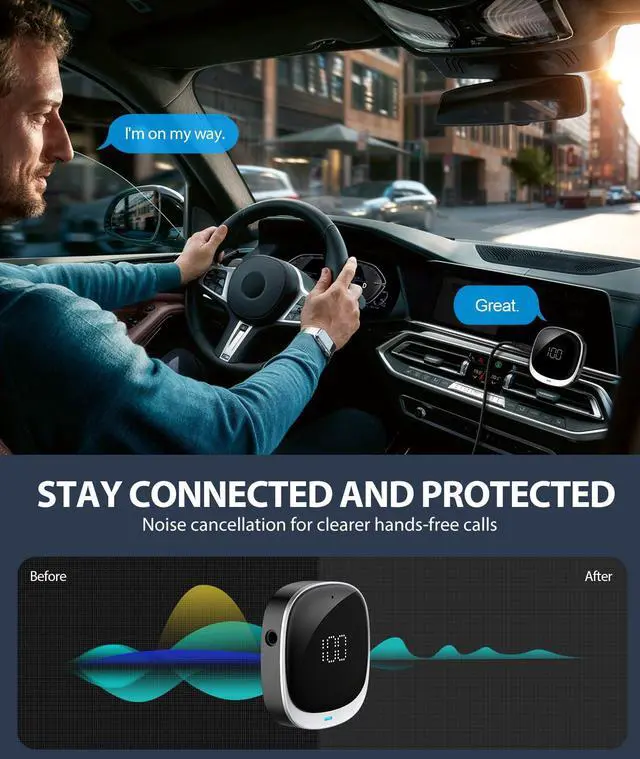 ![Alt view image 2 of 7 - Bluetooth Adapter for Car, [LED Screen] Bluetooth 5.3 Receiver for Speaker/Home Stereo/Wired Headphones, 3.5mm Wireless Audio Receiver for Hands-Free Call/Music, Dual Connection](https://c1.neweggimages.com/productimage/nb640/C3H4D2512110M786626.jpg)