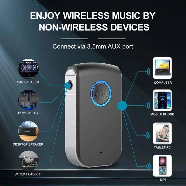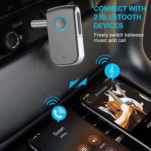 Cut the cord and upgrade your car audio with this Bluetooth AUX adapter. Featuring the latest Bluetooth 5.0 technology, this 3.5mm wireless receiver delivers faster connections, more stable signal transmission, and enhanced audio quality whether you're streaming music or taking a call. Enjoy true hands-free functionality with its built-in microphone and one-touch call control, allowing you to answer, redial, reject, or end calls without ever reaching for your phone. It also supports voice announcements from navigation apps, keeping your eyes on the road and your hands on the wheel. Designed for convenience, it automatically reconnects to your last paired device, eliminating the need for repeated setup. With up to ten hours of battery life on a single charge, its a reliable companion for long drives, road trips, or everyday commuting. Compatible with car stereos, speakers, and headphones with a 3.5mm AUX port, this Bluetooth receiver transforms your wired devices into wireless systems with ease.